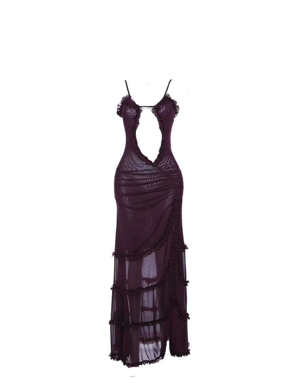 Laila Maxi Dress With Ruffle Bottom - Purple