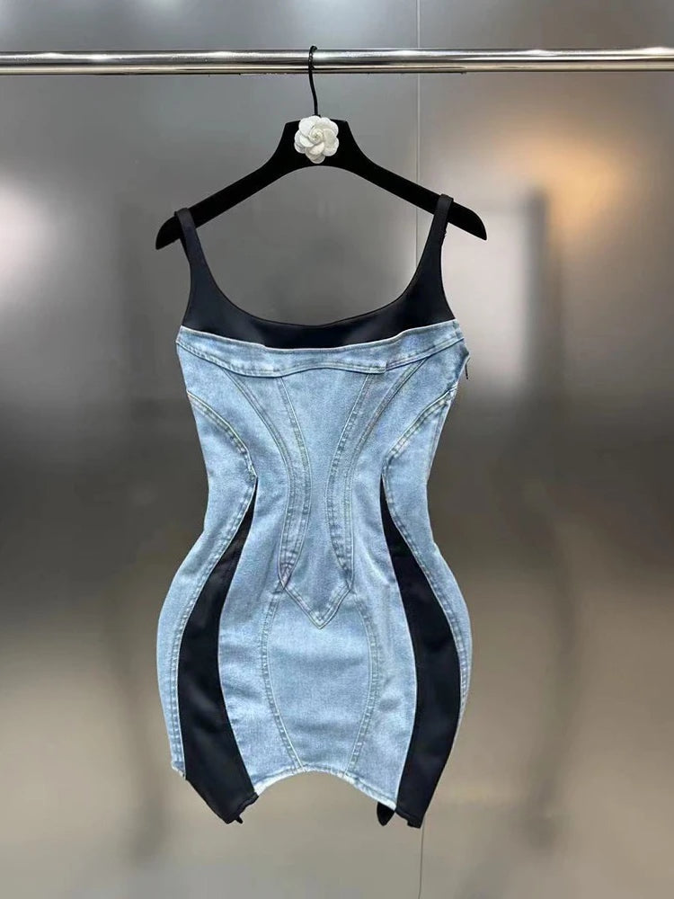 Mesh Patchwork Denim Mini