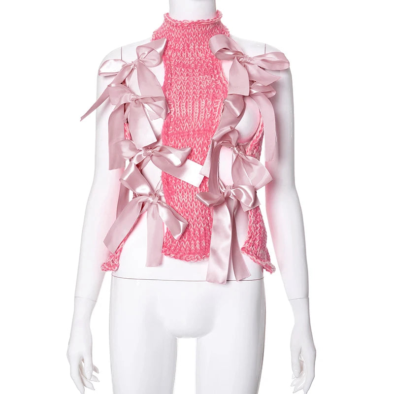 Melania Bow Knitted Crop Top