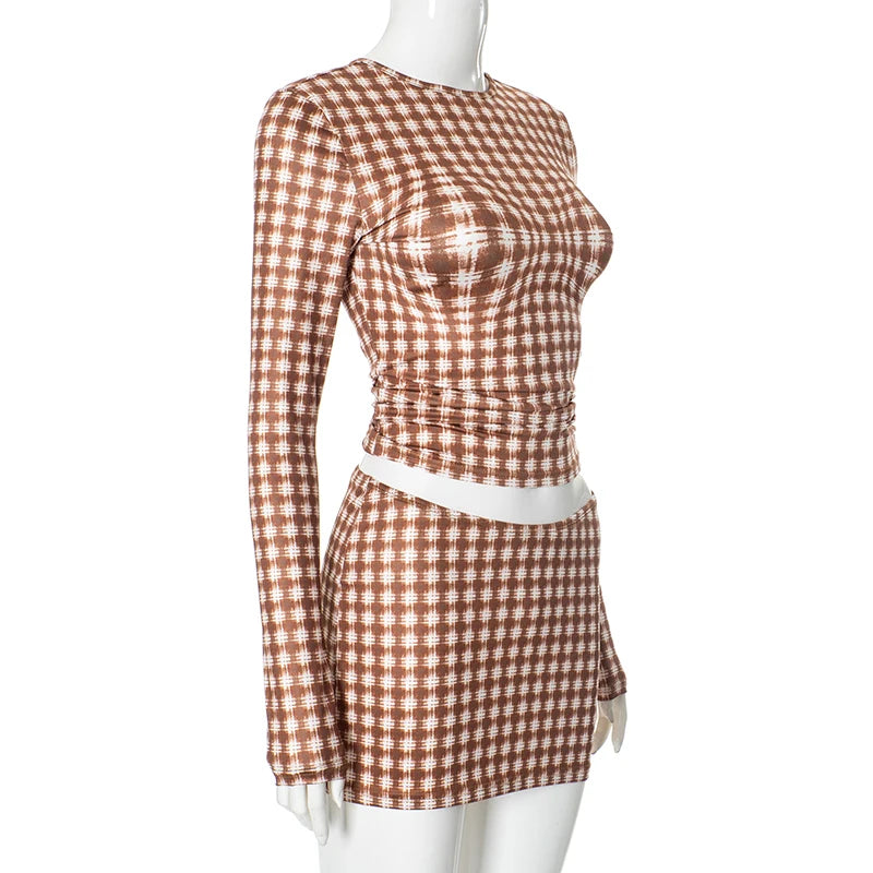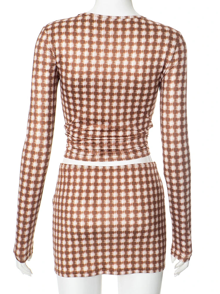 • Plaid illusion skirt set