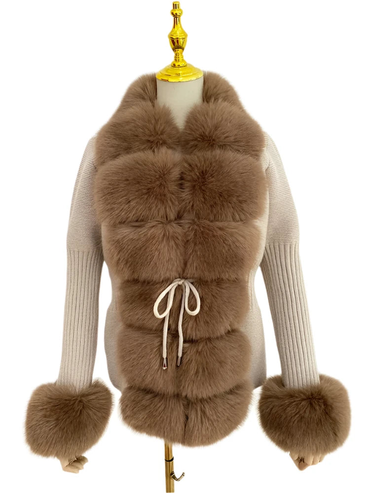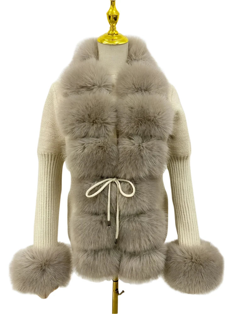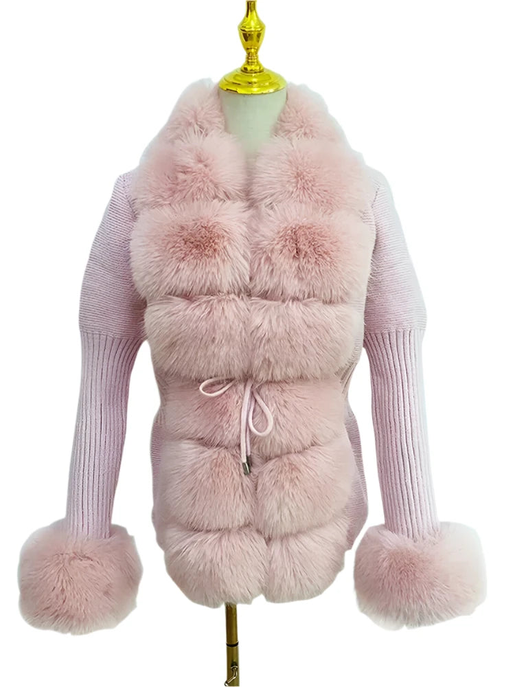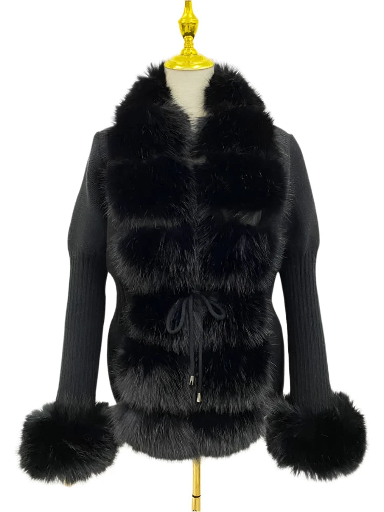Elevate your cold-weather wardrobe with the Faux Fur Luxe Tie Jacket—the perfect blend of elegance and warmth. Crafted with a soft knit body, this coat features luxurious faux fur accents on the front panels and cuffs. The adjustable tie closure cinches at the waist for a flattering silhouette, while the cozy yet lightweight design makes it ideal for layering. Perfect for stepping out in style, this jacket is a must-have for your collection.