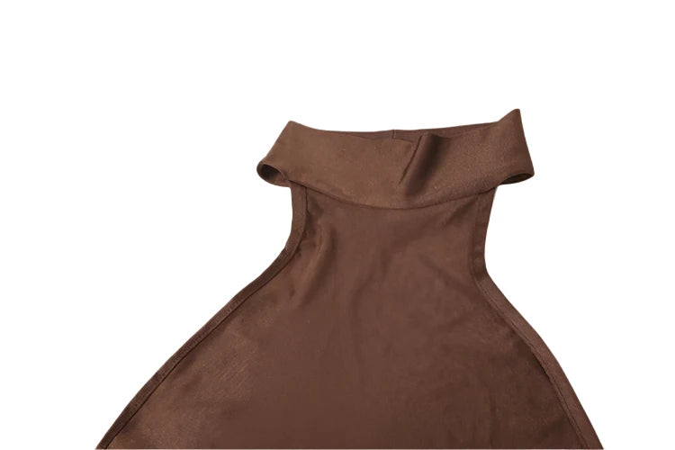 • Neckline: Mock neck halter for a sleek and sophisticated look.