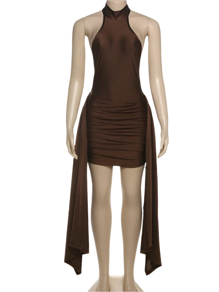 Turn heads in the Sophia Backless Halter, a sultry mock neck dress that blends elegance and allure. Crafted from a soft, silky fabric, this dress features a halter neckline and a daring backless design that keeps you looking effortlessly chic. The ruched detailing hugs your curves, while the side drape sashes add an extra touch of drama, making this dress the perfect statement piece for your next big event.