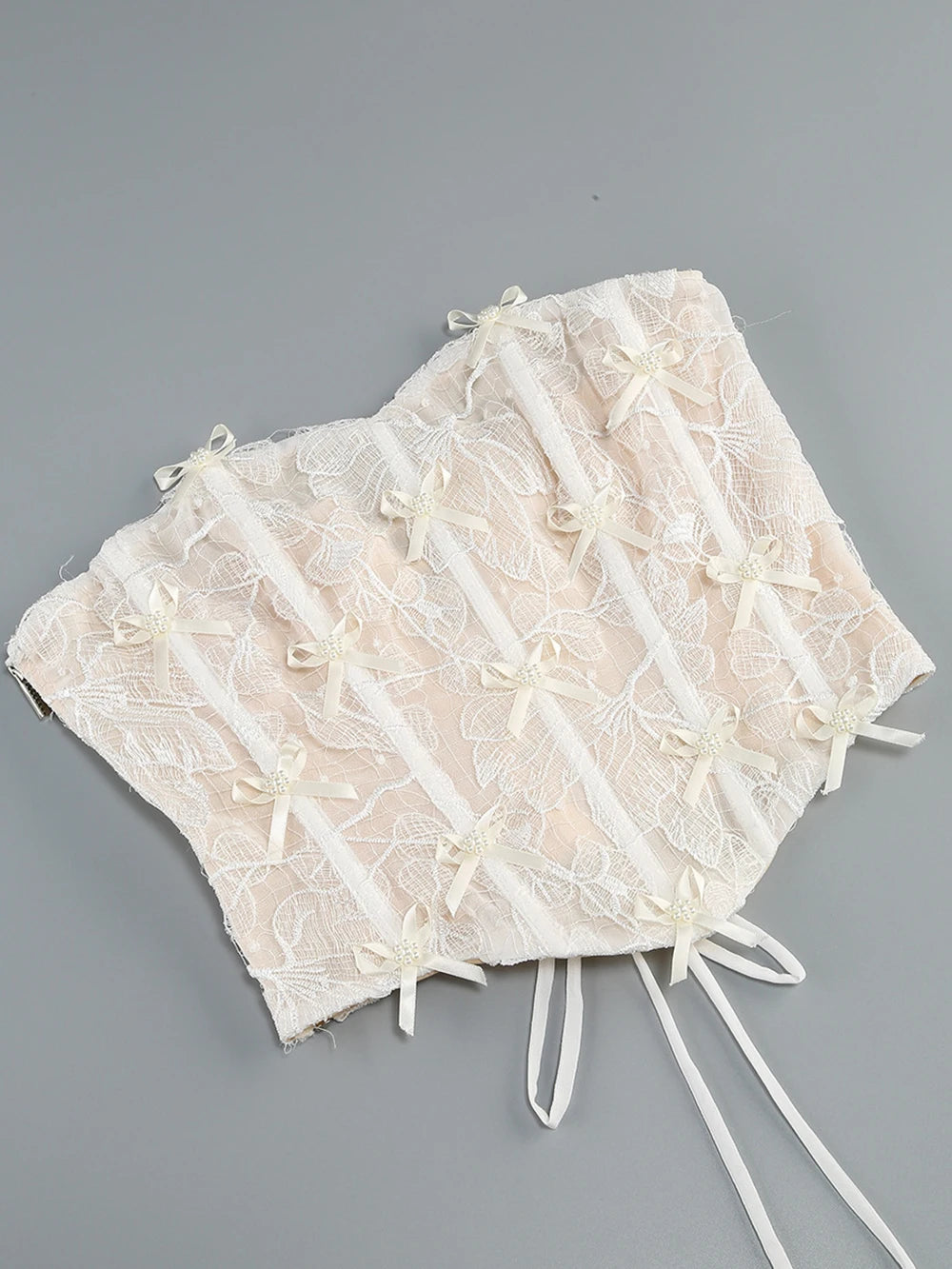 Get ready to turn heads in this Strapless Lace Corset Two Piece. The ivory color and lace insert add a touch of romance, while the corset design and draped detail give an edgy twist. Perfect for any special occasion, this mini dress features a concealed zipper and is gentle dry clean only.