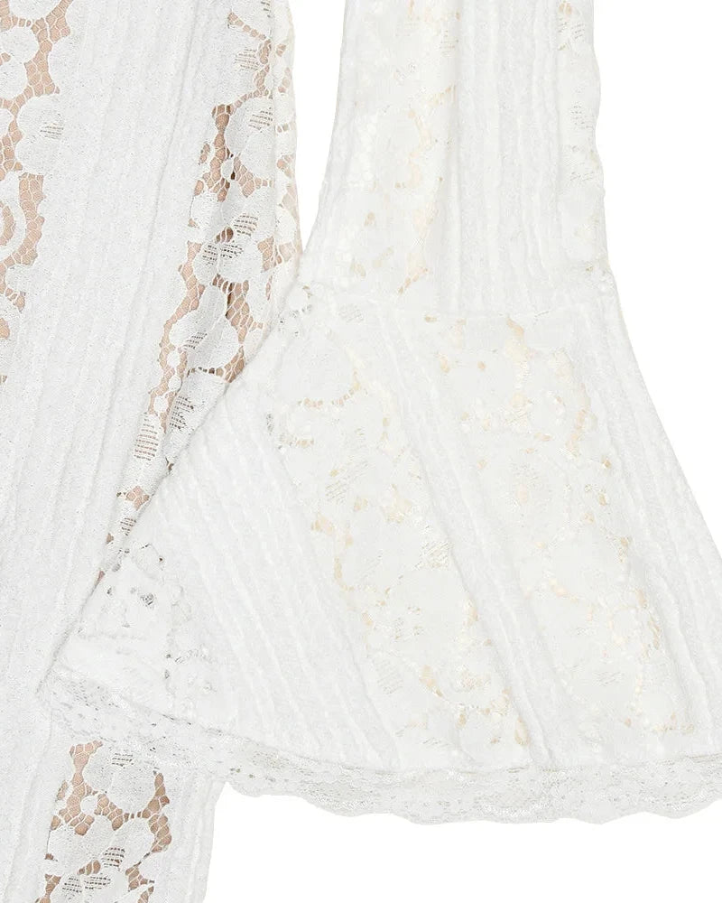 Embrace your feminine side with the Serena Lace Maxi Dress, a stunning blend of elegance and flirty details. This full-lace maxi dress features a tan lining on the inside, ensuring it’s not see-through while beautifully highlighting the intricate lace design. With bell sleeves, ruched detailing at the shoulders, and a charming tie at the strapless neckline, this dress is a dreamy combination of sophistication and fun. Designed with a touch of stretch, it offers a flattering and comfortable fit, making it the perfect choice for when you want to feel extra girly and confident.