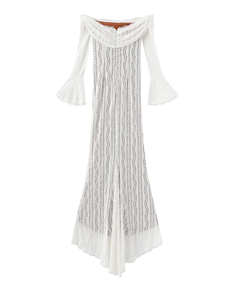 • Full-lace maxi dress with tan lining for coverage and contrast