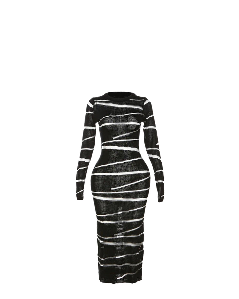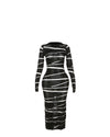 The sheath silhouette of this dress accentuates the figure, offering a streamlined, hourglass effect that's perfect for those seeking a flattering fit. This design is ideal for those who appreciate a sleek, modern look in their wardrobe.
