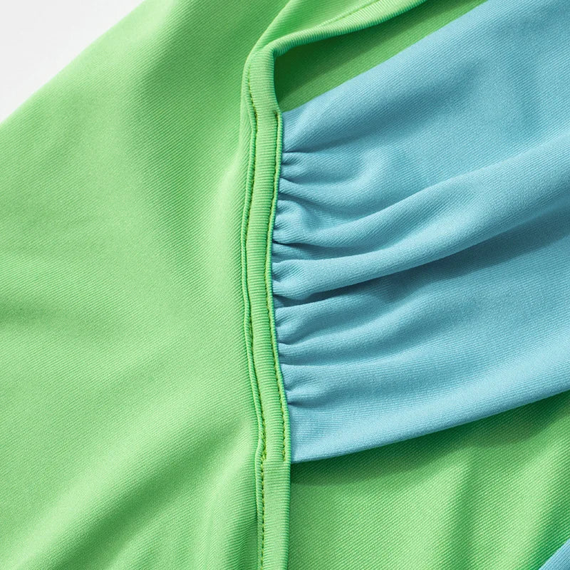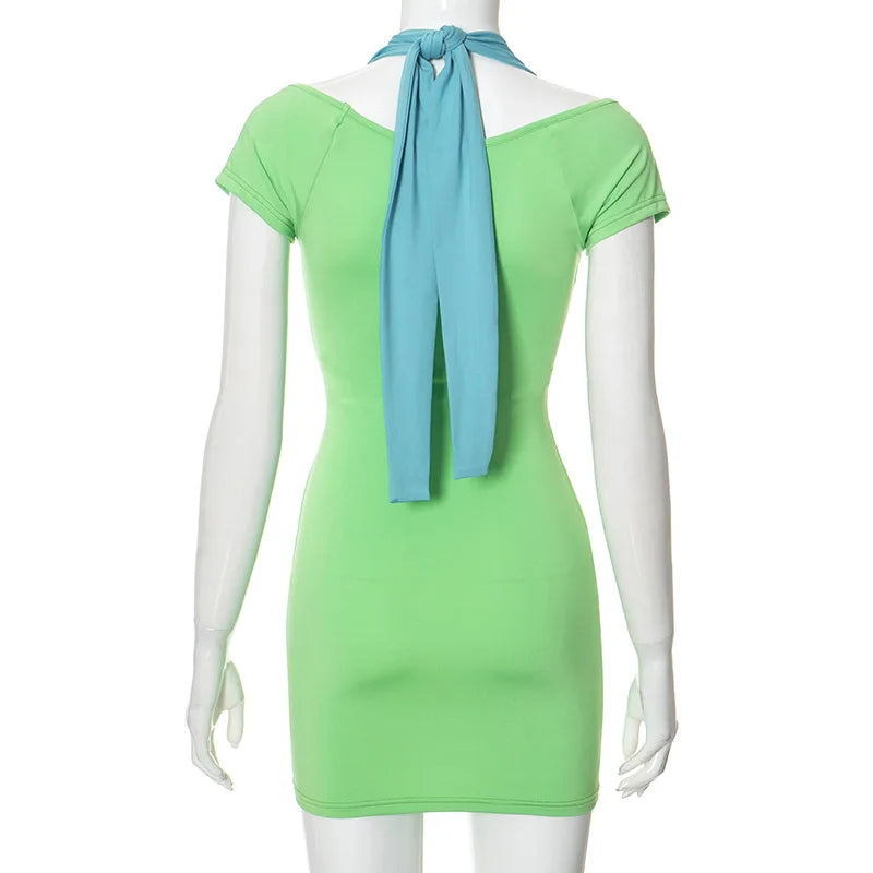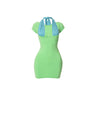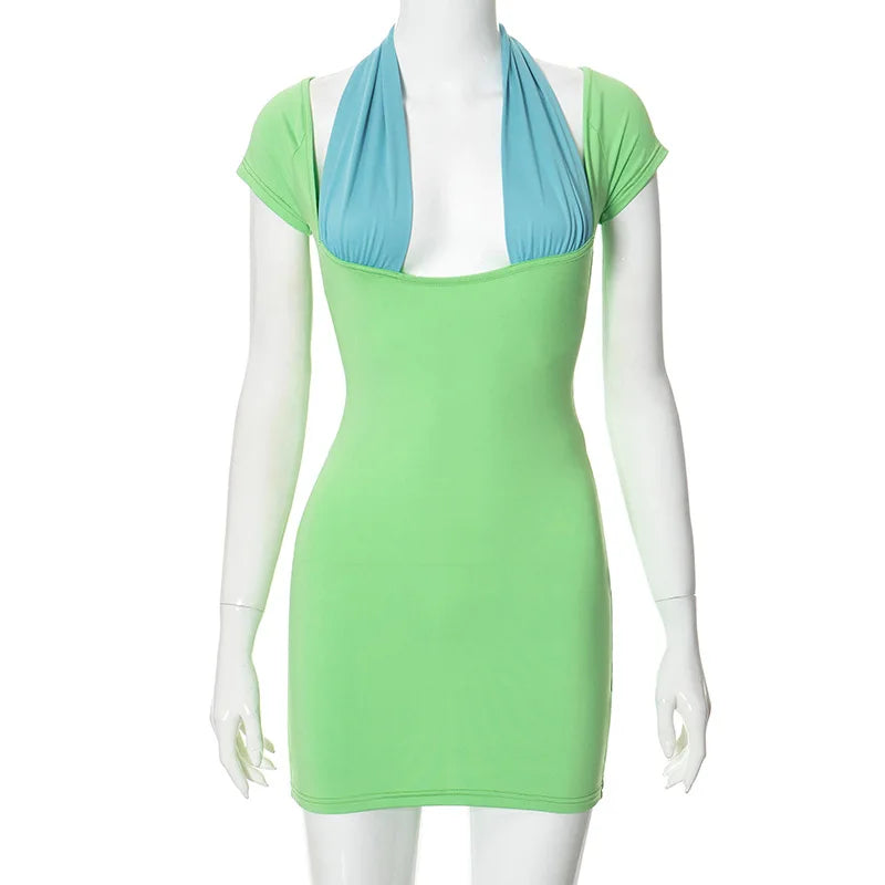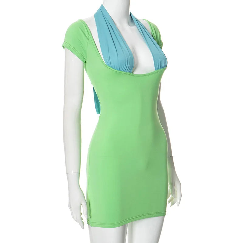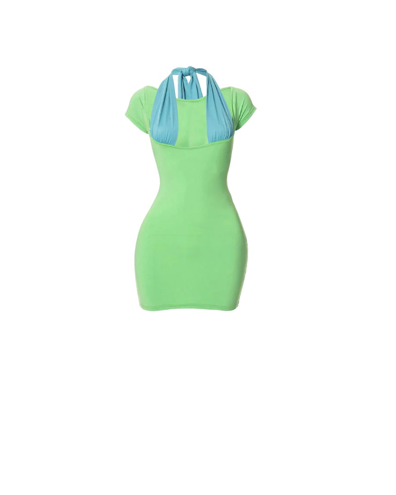 Color block mini dress with triangle halter detail