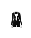 Long sleeve tuxe style romper with cut out