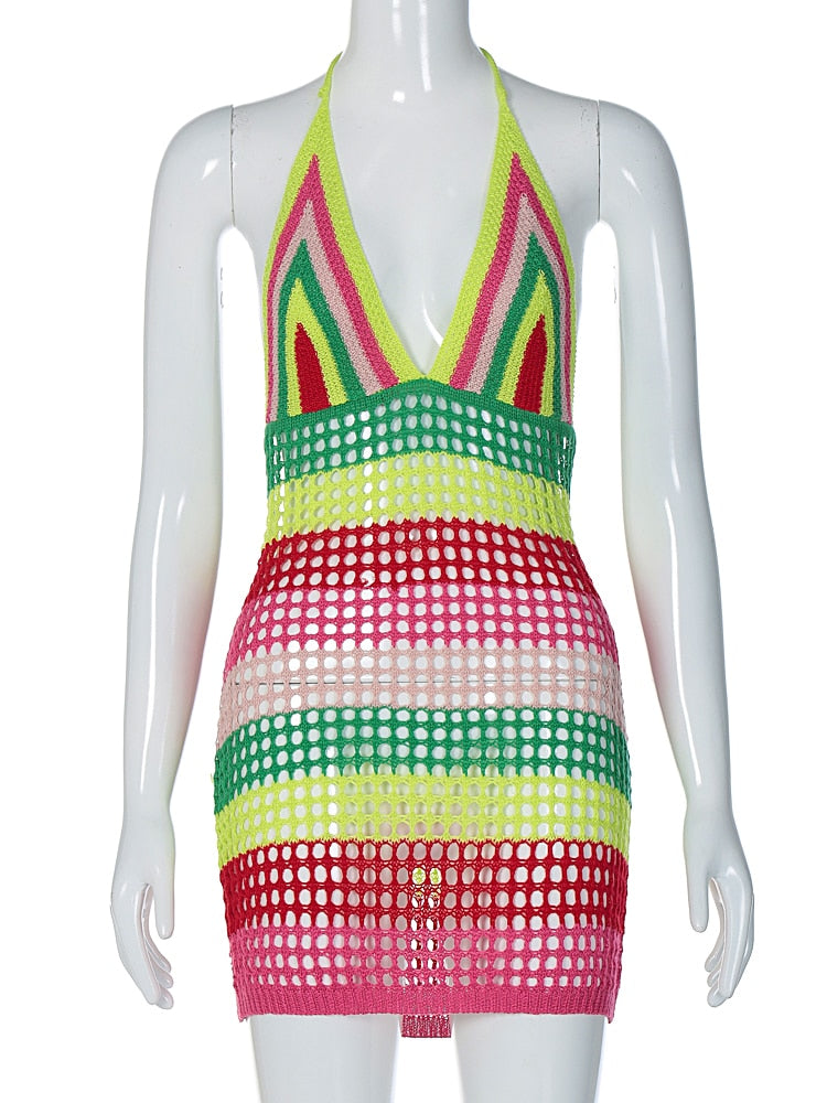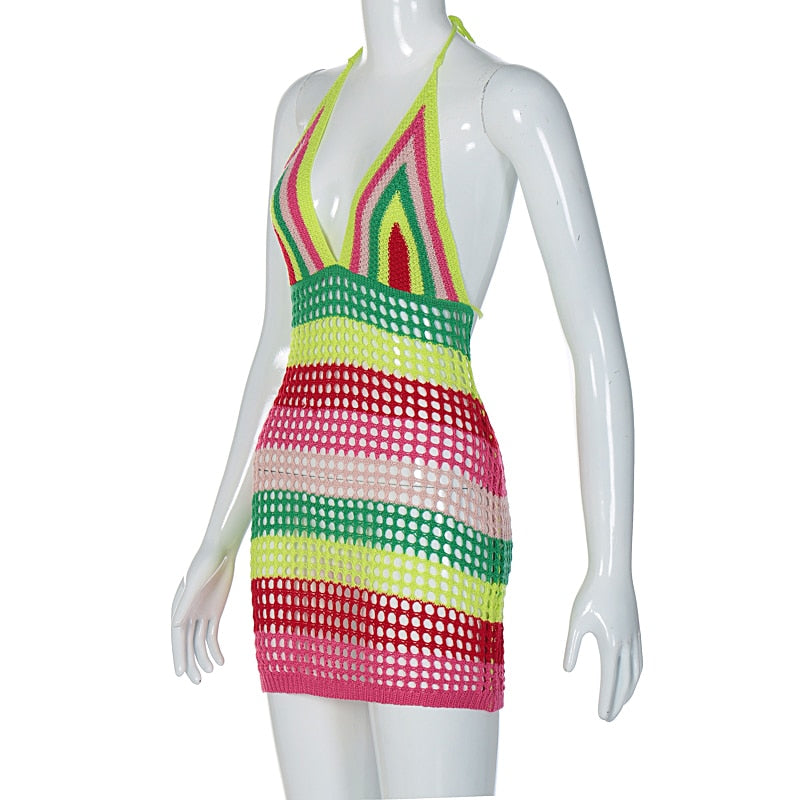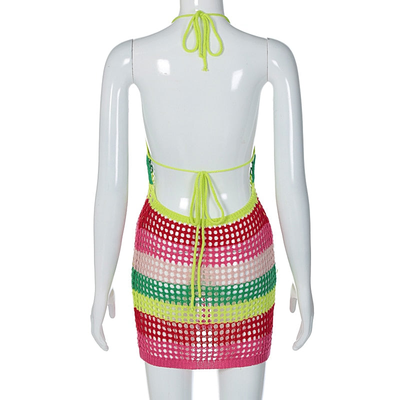 Halter crochet mini dress