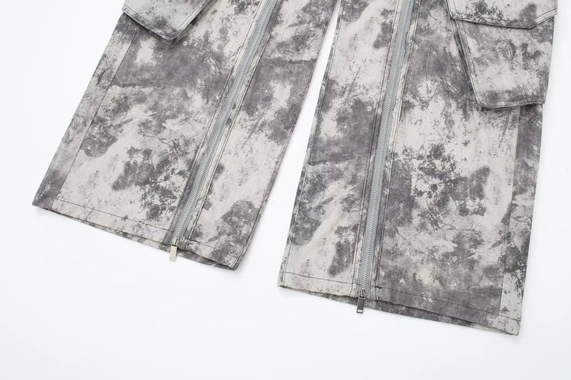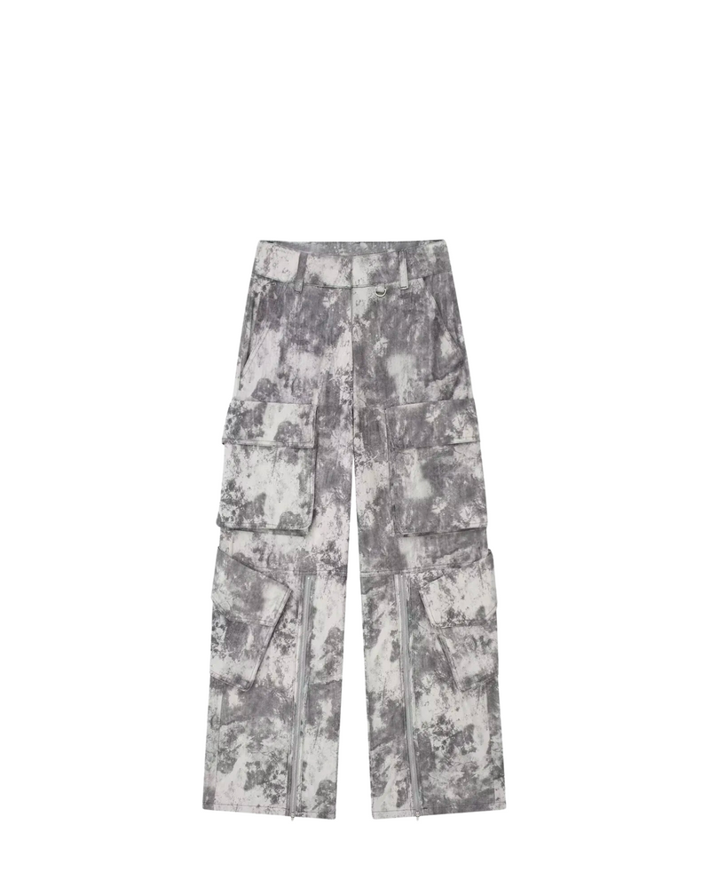 Printed wide leg cargo pants