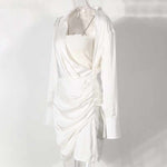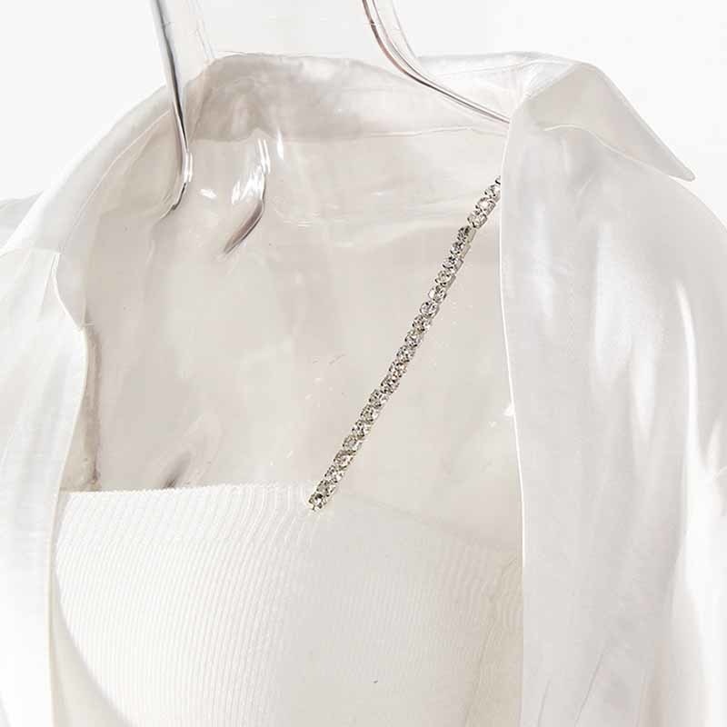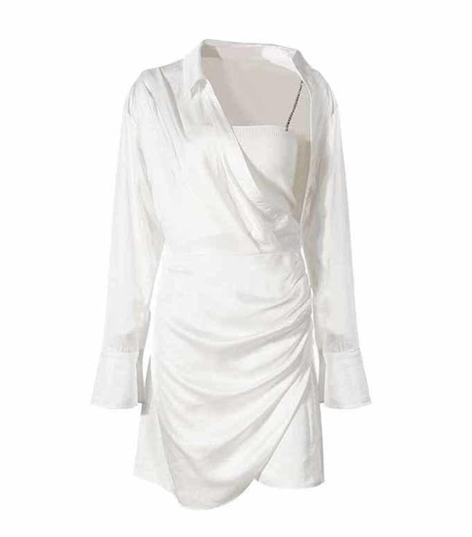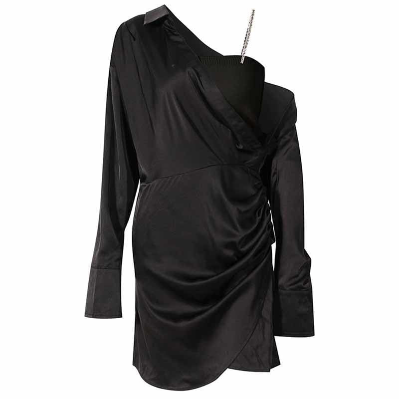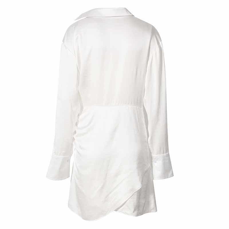 Pattern Type: SolidStyle: AsymmetricalDecoration: RhinestoneLength: Above Knee, MiniCollar: Turn-down CollarMaterial: COTTON, Polyester