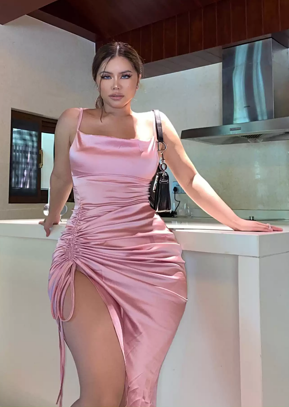 Fits true to size! Material has stretch. Our model is wearing a size Medium.