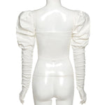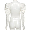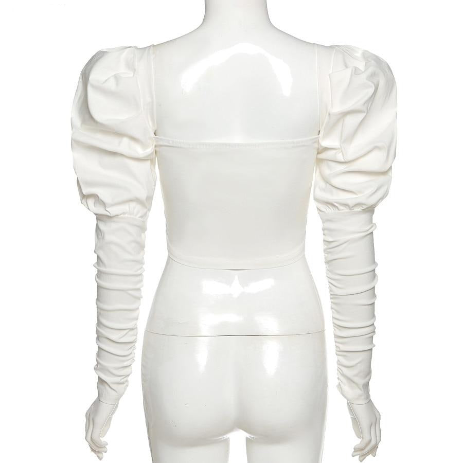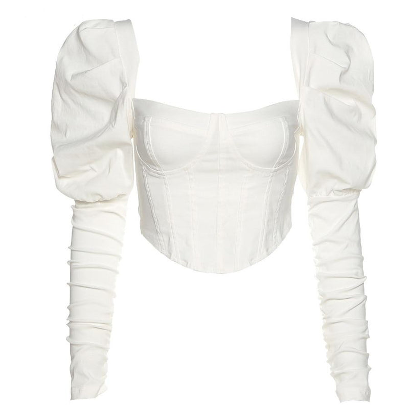 Corset style puff sleeve topFits true to size